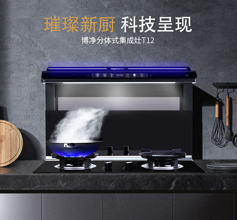 智能觸控設(shè)計,堅固耐用,開啟廚房智能新時代。巧妙搭配廚房好物,變換出風(fēng)格的大不同,刷新廚房的便捷度與高顏值,就選博凈分體式集成灶!
